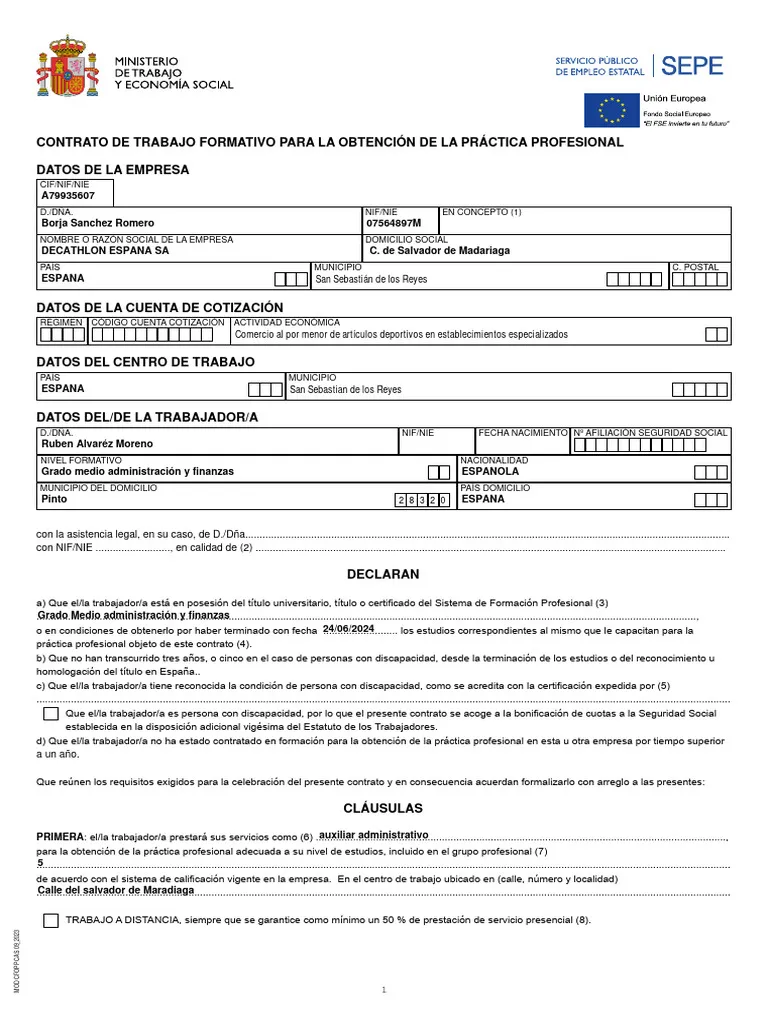 - Descarga el modelo oficial del contrato formativo desde la web del SEPE.