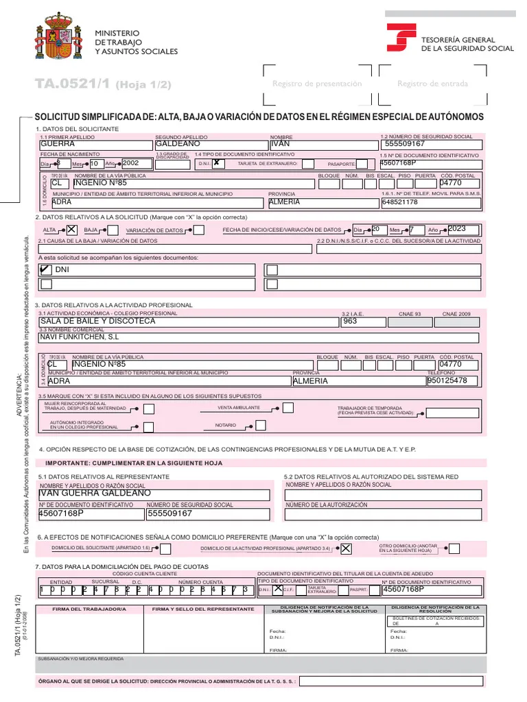 - Completa el formulario con tus datos personales, actividad y base de cotización.