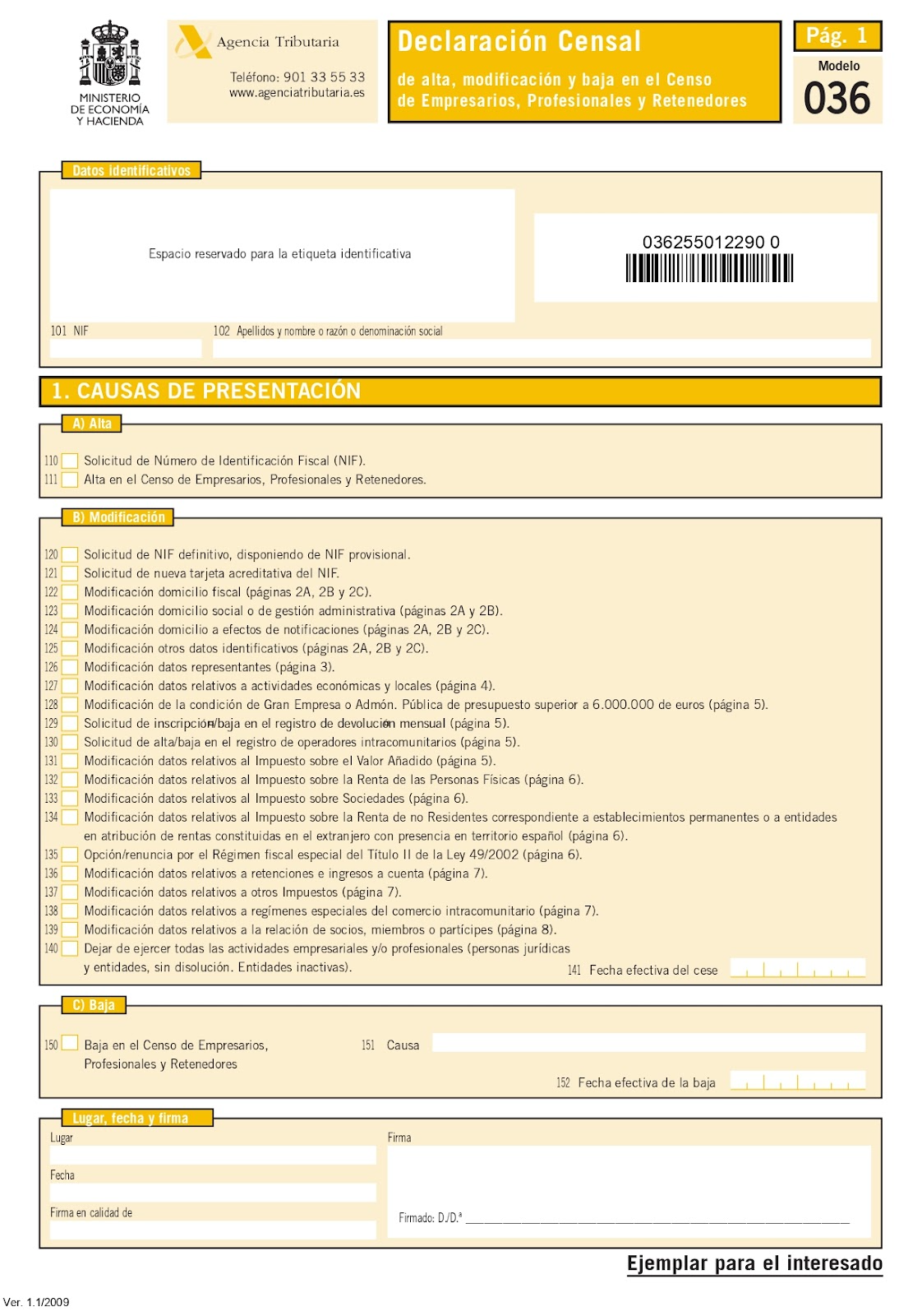 - Modelo 036: es la declaración censal general, más completa y detallada, que incluye todos los posibles supuestos.
