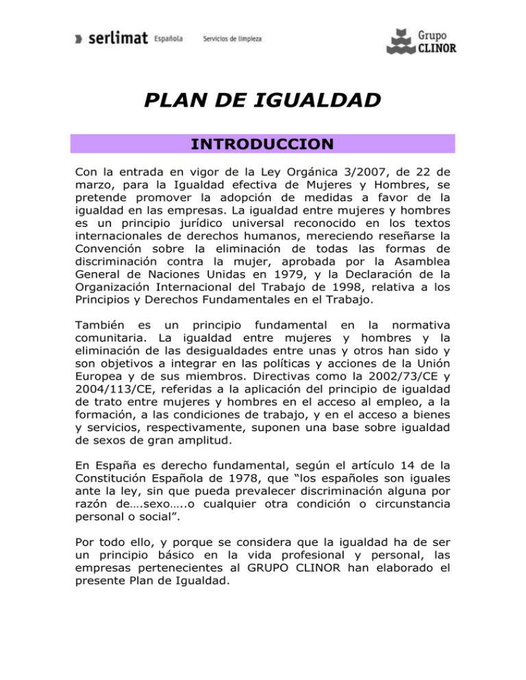 Puedes visualizar un ejemplo de introducción de un Plan de Igualdad: