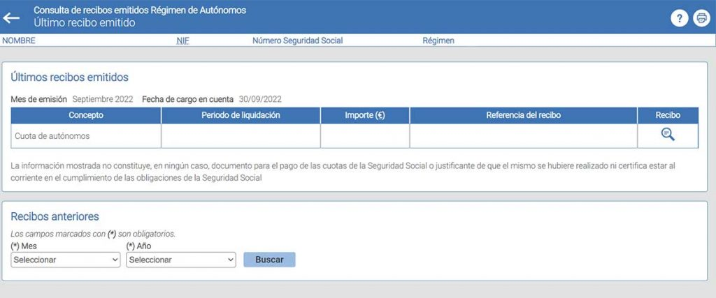 El recibo se emite automáticamente cada mes cuando la TGSS carga la cuota en la cuenta bancaria del autónomo. Puede obtenerse de dos maneras: